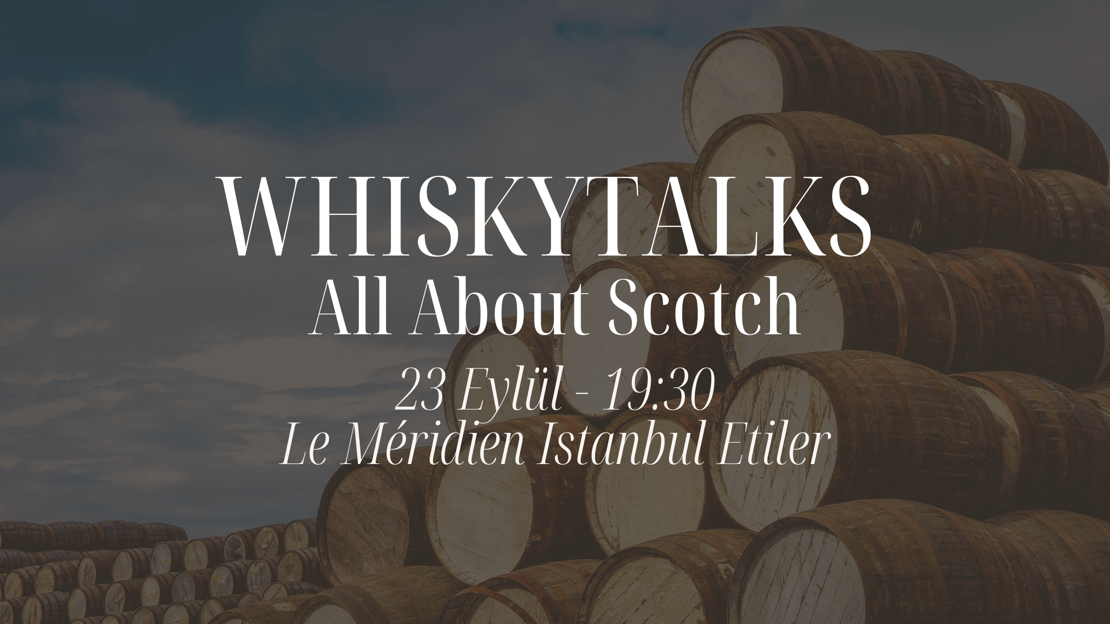 Whiskytalks “All about Scotch” tadımı 23 Eylül salı akşamı saat 19:30’da Le Méridien Istanbul Etiler’de bulunan özel bir suite’de yapılacaktır. Viski kültürüne dair her şeyin konuşulacağı bu eğitimimize viski tarihi, üretim süreçleri, ve farklı viski türleri gibi konuların yer aldığı oldukça zengin bir anlatımla başlıyoruz.